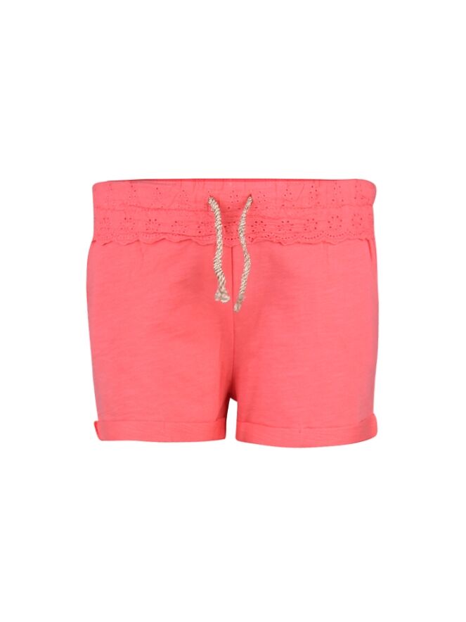 Shorts van Persival. De shorts zijn van jogging stof en hebben een broderie taille band. Materiaal: 100% katoen. Op 30 graden wassen, niet bleken, niet in de droger, kan gestreken worden.