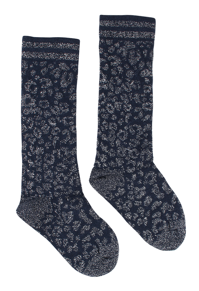 2 paar kniekousen van Persival. 1 paar met glitter animal print en het andere paar is effen met glitter. Materiaal: 78% katoen, 20% polyamide, 2% elasthan. Wassen op 30 graden.