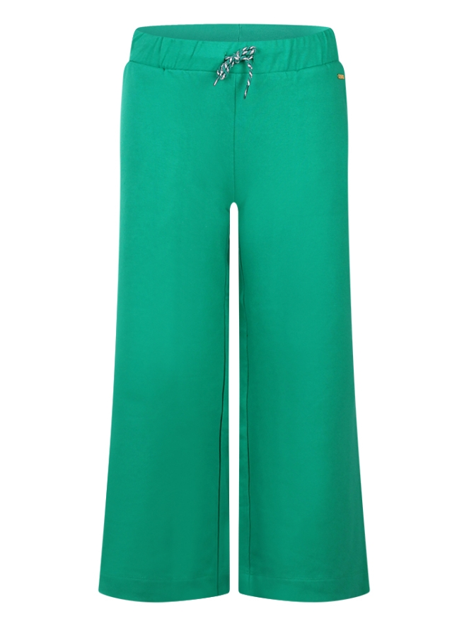 Sweat broek met wijdepijpen en steekzakken. De broek heeft een elastische tailleband met een koord.