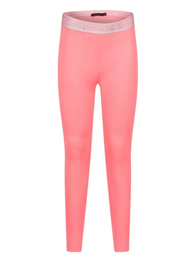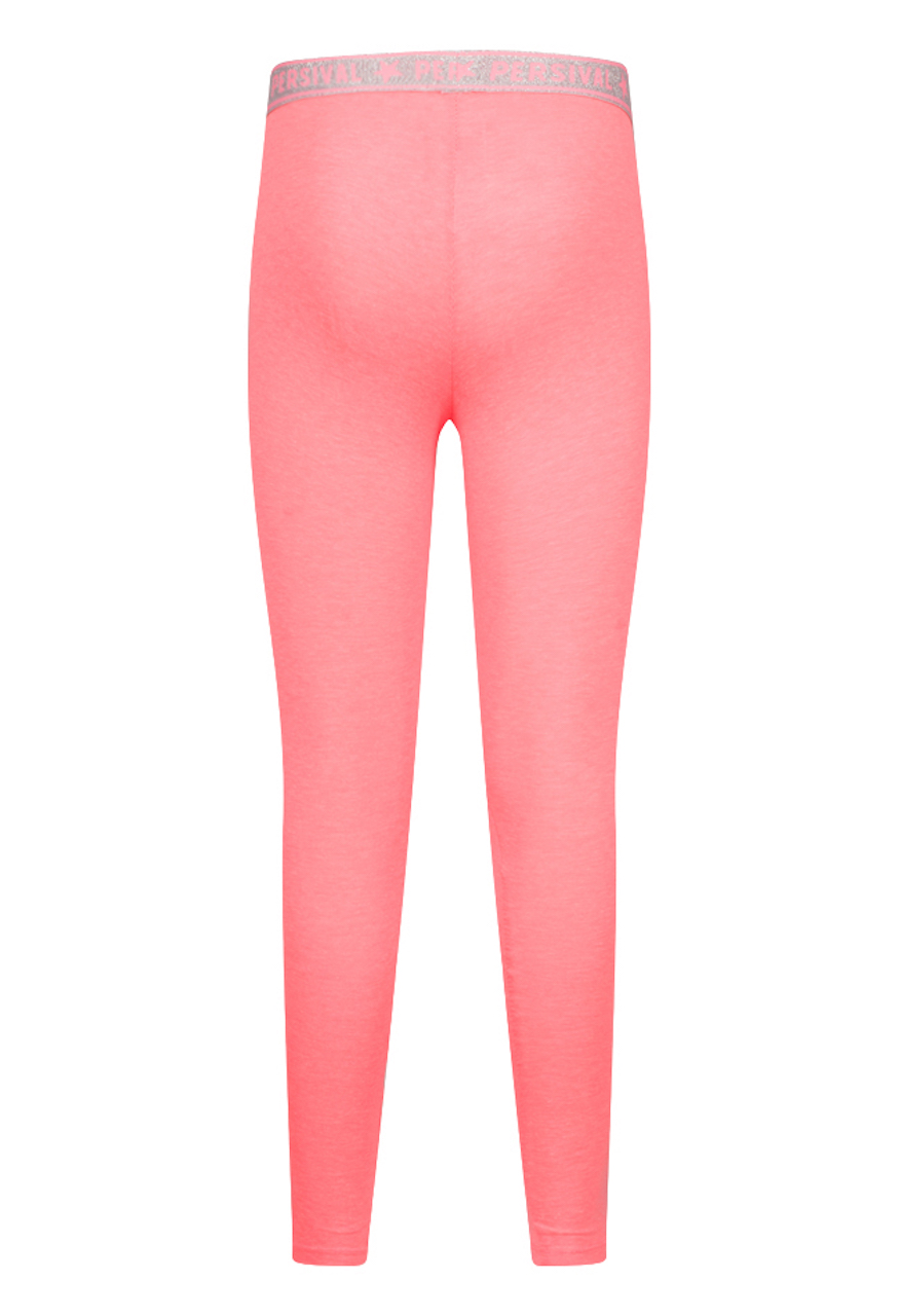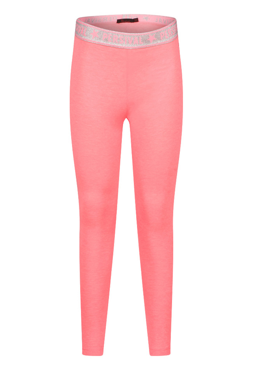 Legging van Persival. Deze legging heeft een lange lengte. De taille heeft elastieken glitter band. Hij is verkrijgbaar in 10 zomerse kleuren. Ideaal om te combineren met een rokje, jurkje of korte broek.