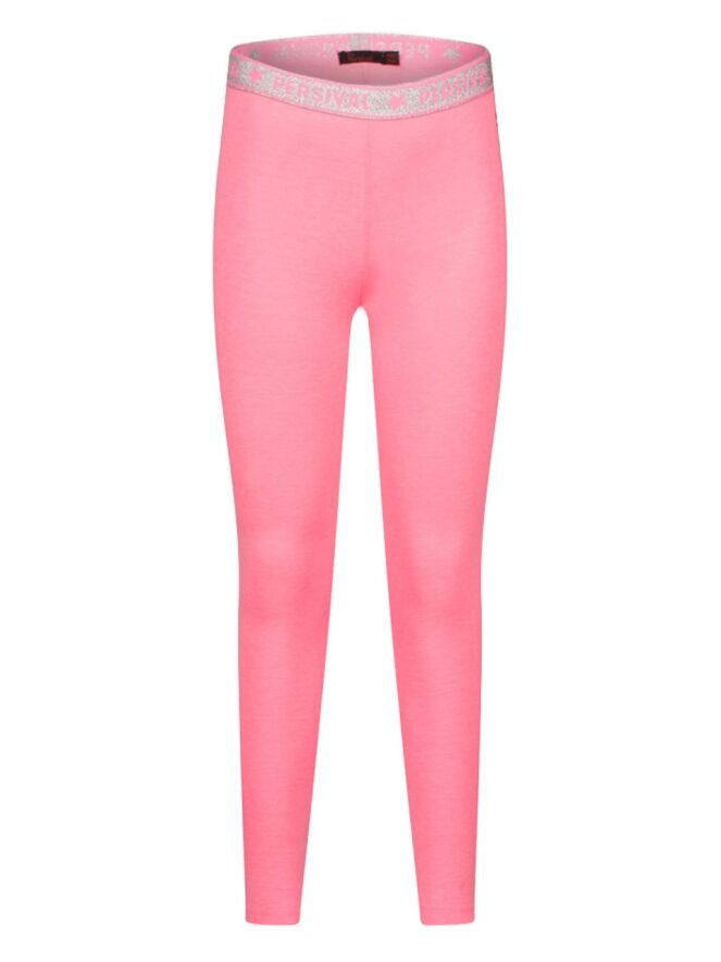Legging van Persival. Deze legging heeft een lange lengte. De taille heeft elastieken glitter band. Hij is verkrijgbaar in 10 zomerse kleuren. Ideaal om te combineren met een rokje, jurkje of korte broek.