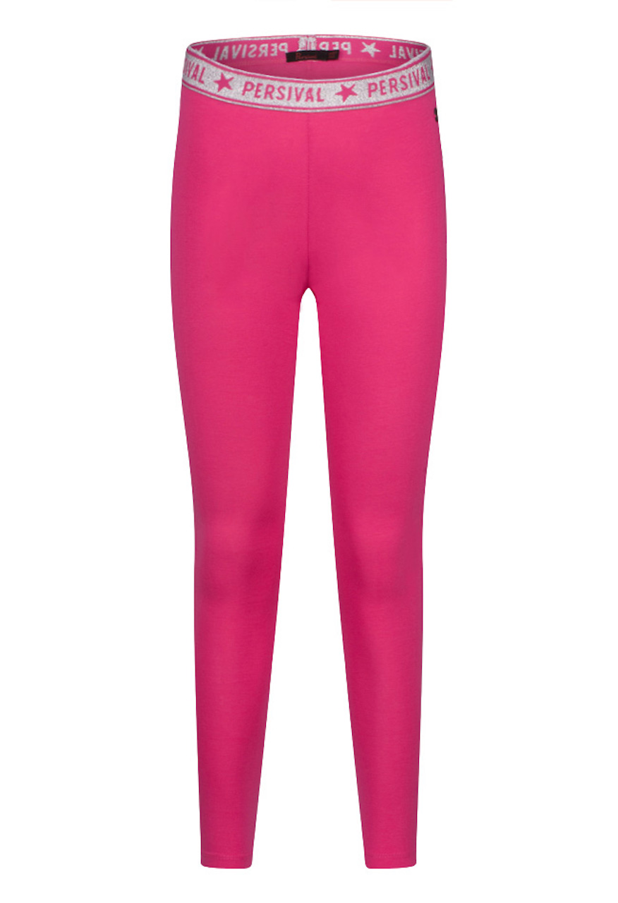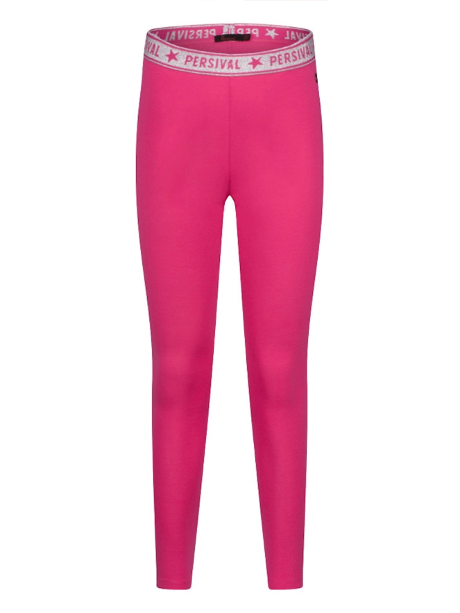 Legging van Persival. Deze legging heeft een lange lengte. De taille heeft elastieken glitter band. Hij is verkrijgbaar in 10 zomerse kleuren. Ideaal om te combineren met een rokje, jurkje of korte broek.