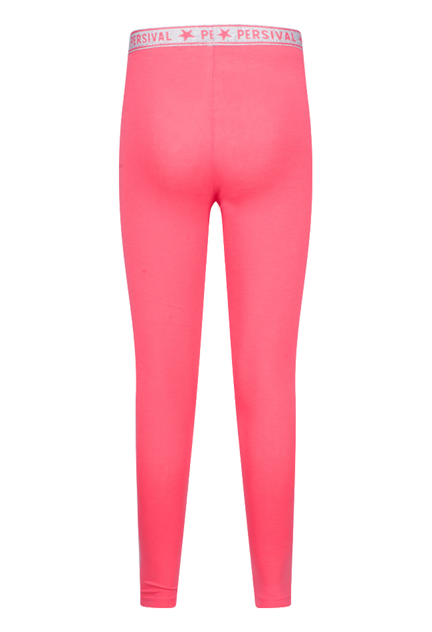 Legging van Persival. Deze legging heeft een lange lengte. De taille heeft elastieken glitter band. Hij is verkrijgbaar in 10 zomerse kleuren. Ideaal om te combineren met een rokje, jurkje of korte broek.