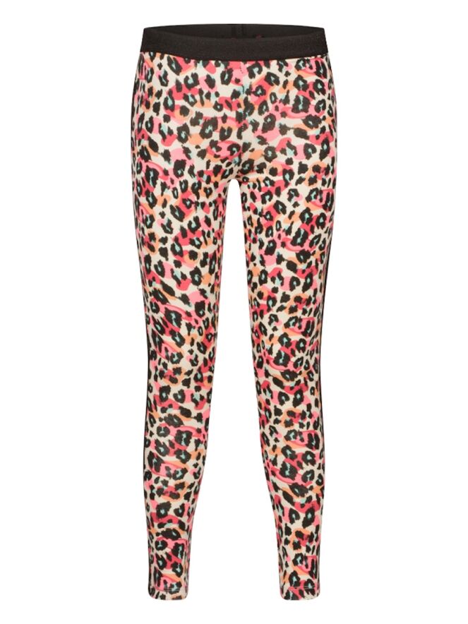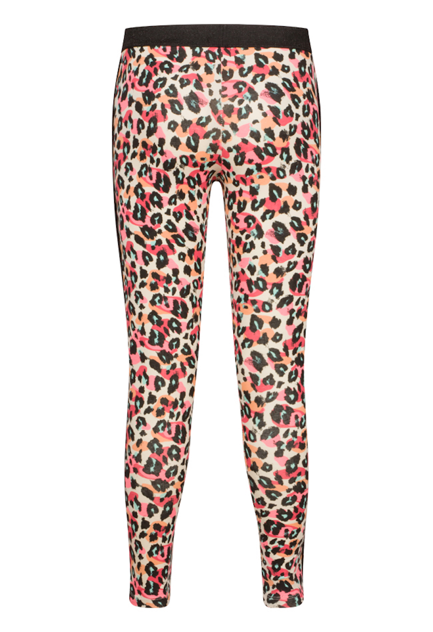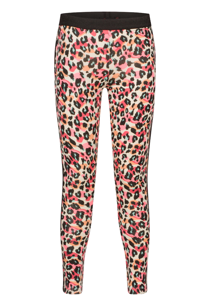 Legging met multicolour panterprint van Persival. Deze legging heeft een lange lengte. Bij de taille zit een glitter elastieken band en aan de zijkant loopt een glitterbies. hij is verkrijgbaar in 3 verschillende kleurcombinaties.