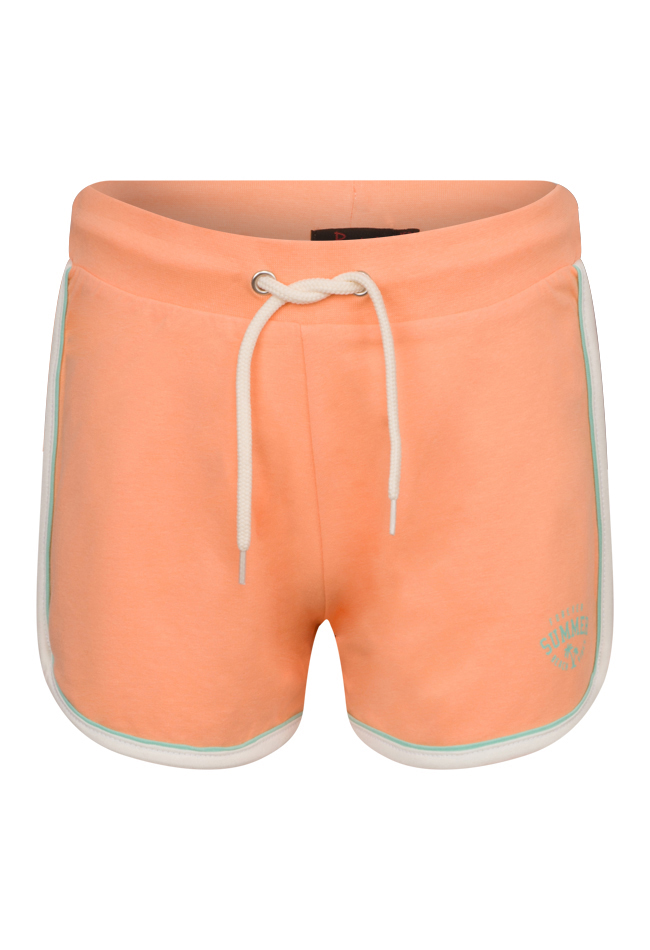 Short met elastische tailleband en koord. Met een piping in contrasterende kleur.
