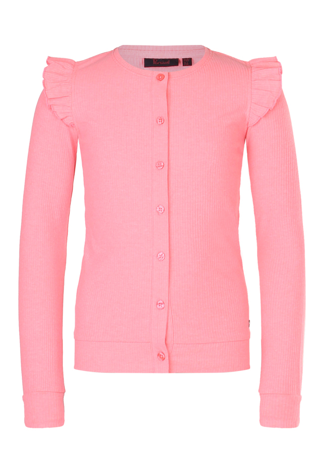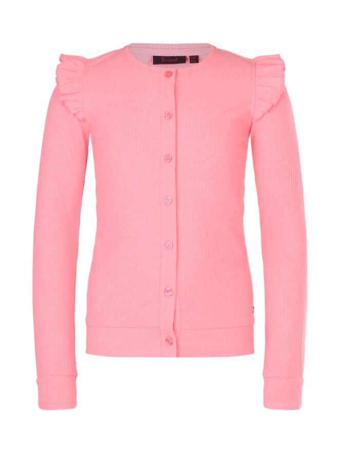 Dit fijne vest is gemaakt van ribstof en heeft op de mouwen een ruche. Het vest kan worden gesloten met knoopjes. Het vest is verkrijgbaar in drie verschillende kleuren.