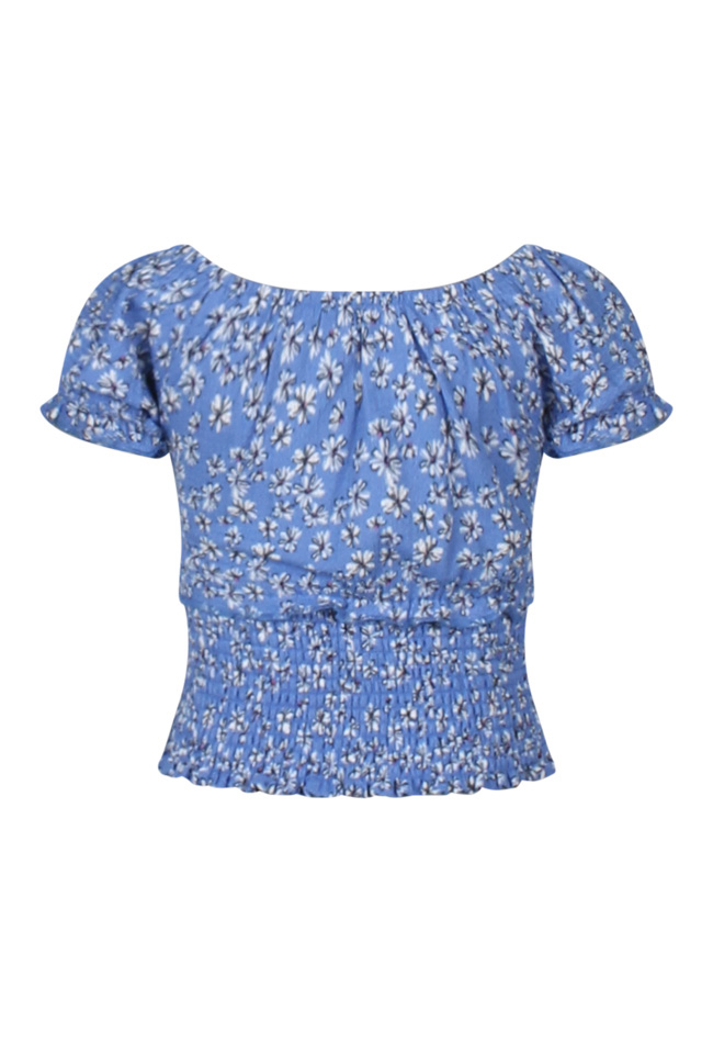 Deze top met bloemenprint heeft powmouwen en rond de middel een elastieken crincle band. In dezelfde print is er ook een jurkje, short, rokje en legging verkrijgbaar. Art.nummers Jurkje Z80009 Short Z80010 Rokje Z80008 Legging Z80164