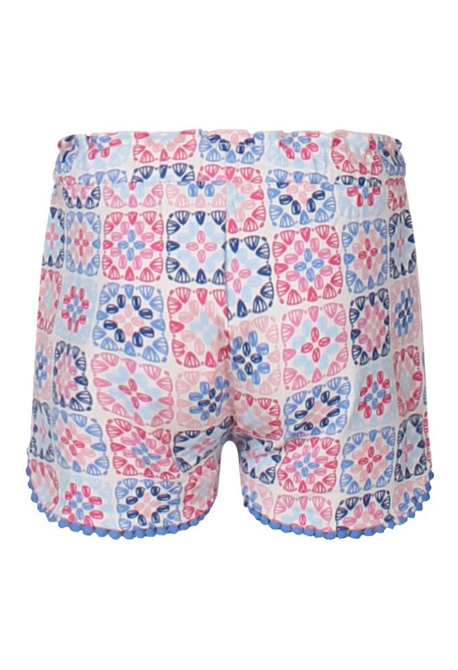 Deze short heeft twee steekzakken, een elastische tailleband met koord en een afwerking met bolletjesband aan de onderkant.