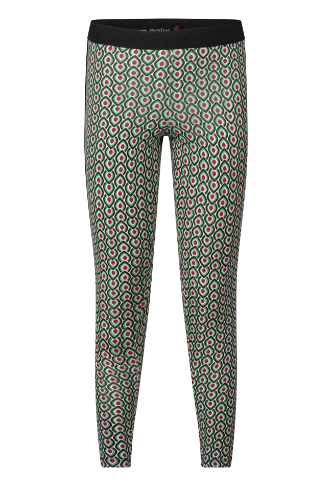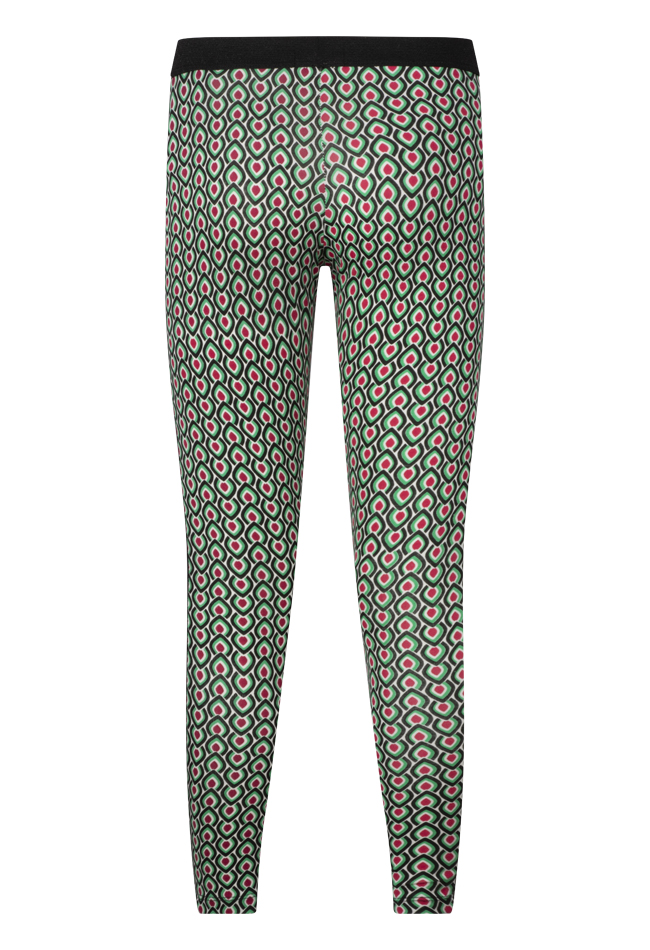 Deze legging heeft een druppen patroon. De elastische tailleband heeft een klein glittertje.
