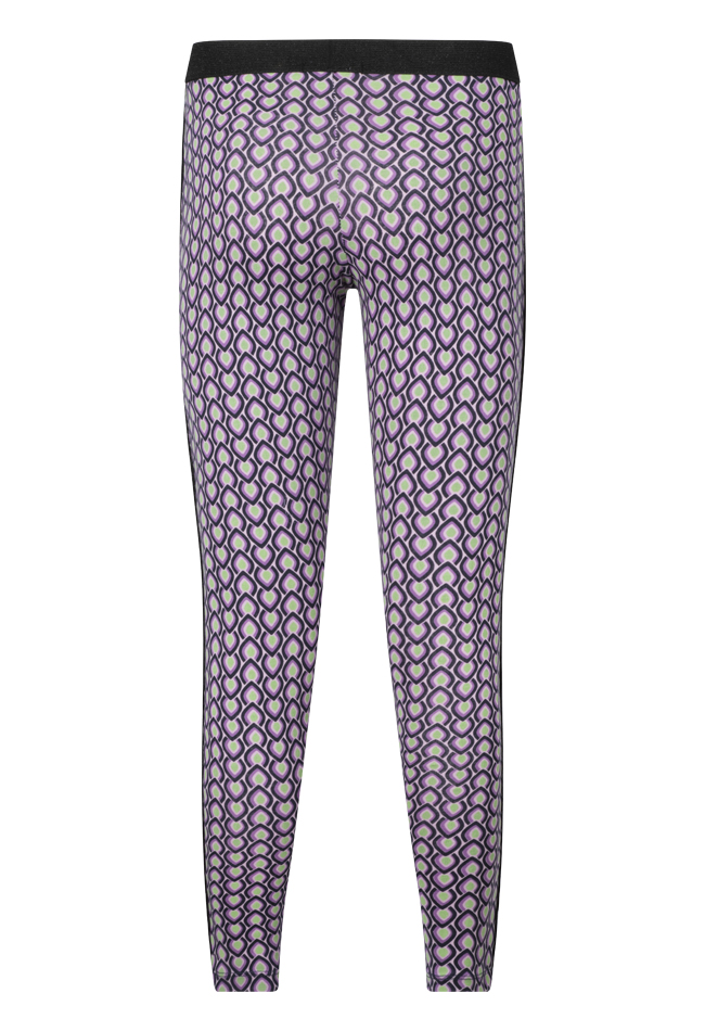 Deze legging heeft een druppen patroon. De elastische tailleband heeft een klein glittertje.