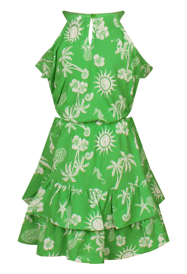 Girl we've got your back! Dit vrolijke jurkje met ruches en vrolijke print is perfect voor de zomer. Of ze hem nu draagt naar het strand of een avontuurlijk dagje weg, het kan allemaal! Stijl hem af met een leuk denim jackje en ze is helemaal good-to-go! Heb jullie dit item al in je shoppingbag?