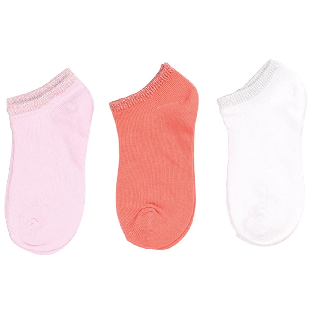 Deze sneakersokken zitten verpakt per 3, zijn in effen kleur maar hebben wel een glittertje in de boord.