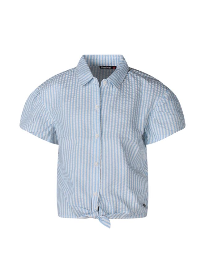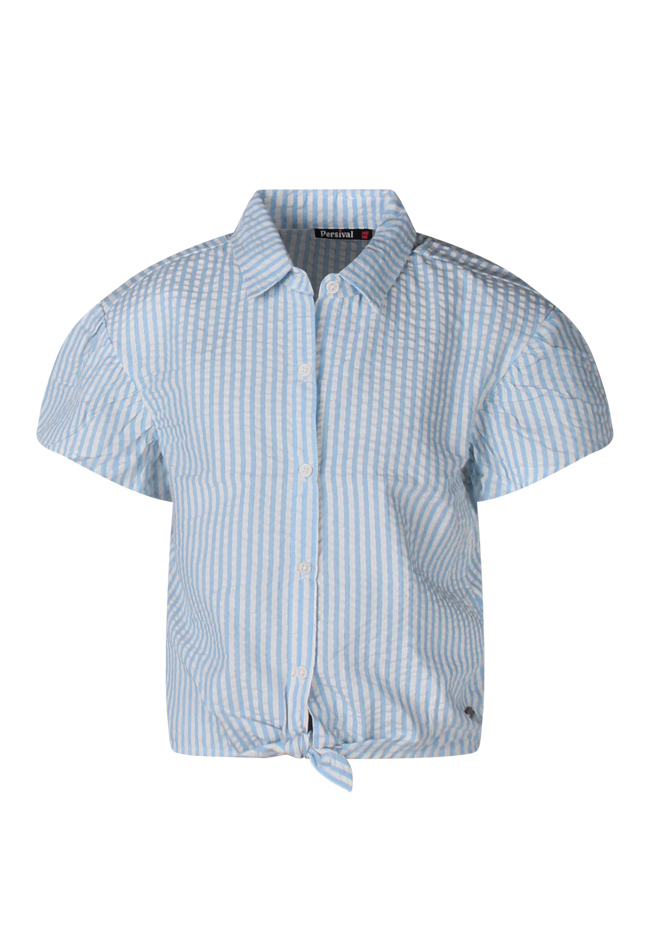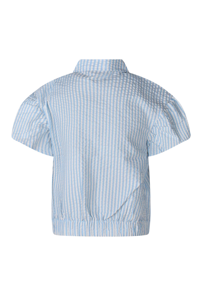 Deze vrolijke blouse heeft een stijlvolle streepprint en speels uitlopende korte mouwen. Het knoopdetail aan de voorkant geeft een trendy touch, terwijl het elastiek op de rug zorgt voor een mooie aansluitende pasvorm.