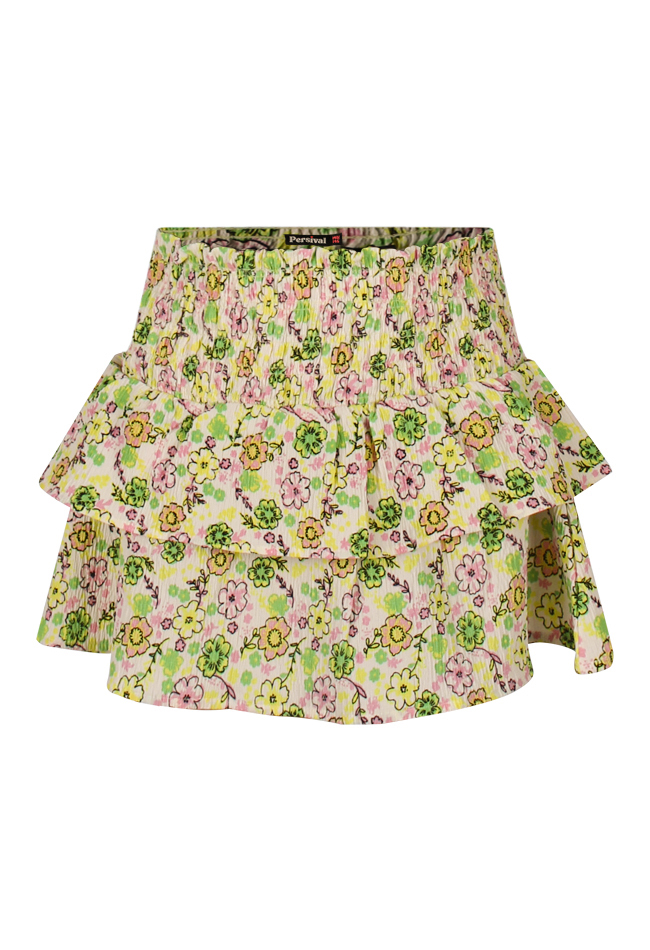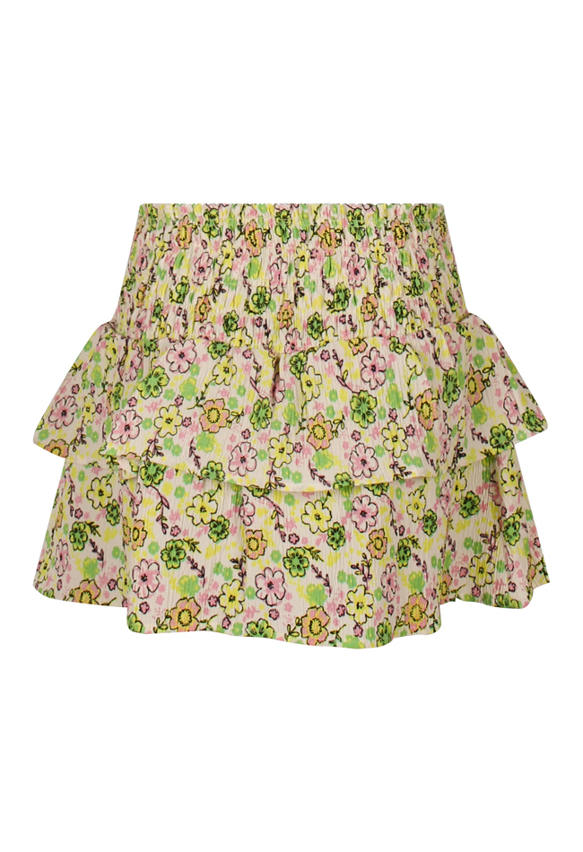 Zomers bloemen stroken rokje van crincle stof. Dit rokje heeft een hoge elastische smock tailleband en sluit daarom fijn aan. Leuk te combineren met T-shirts of de bijpassende blouse met art.nr. Z90046