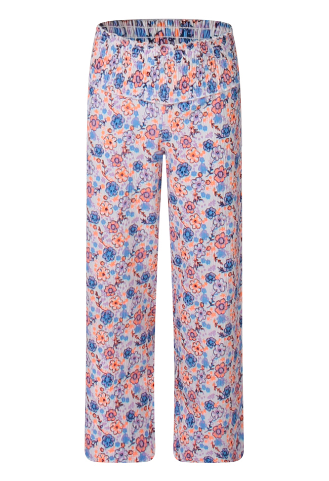 Leuke zomerse luchtige broek van crincle stof met vrolijke bloemenprint! Deze broek heeft geen zakken maar de hoge elastische tailleband maakt dat helemaal goed! Liever een co-ord set? We hebben een bijpassende blouse met korte mouw voor erbij. Art.nr. Z90046