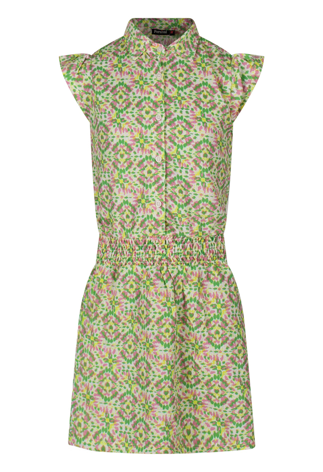 Met dit jurkje ben je helemaal klaar voor de zomer! Wij worden helemaal blij van de vrolijke kleurtjes. Dit jurkje heeft knoopjes tot de middel en een smockband in de middel. Leuke zomerse schoen eronder, eventueel spijkerjasje erover en ready to rumble!!