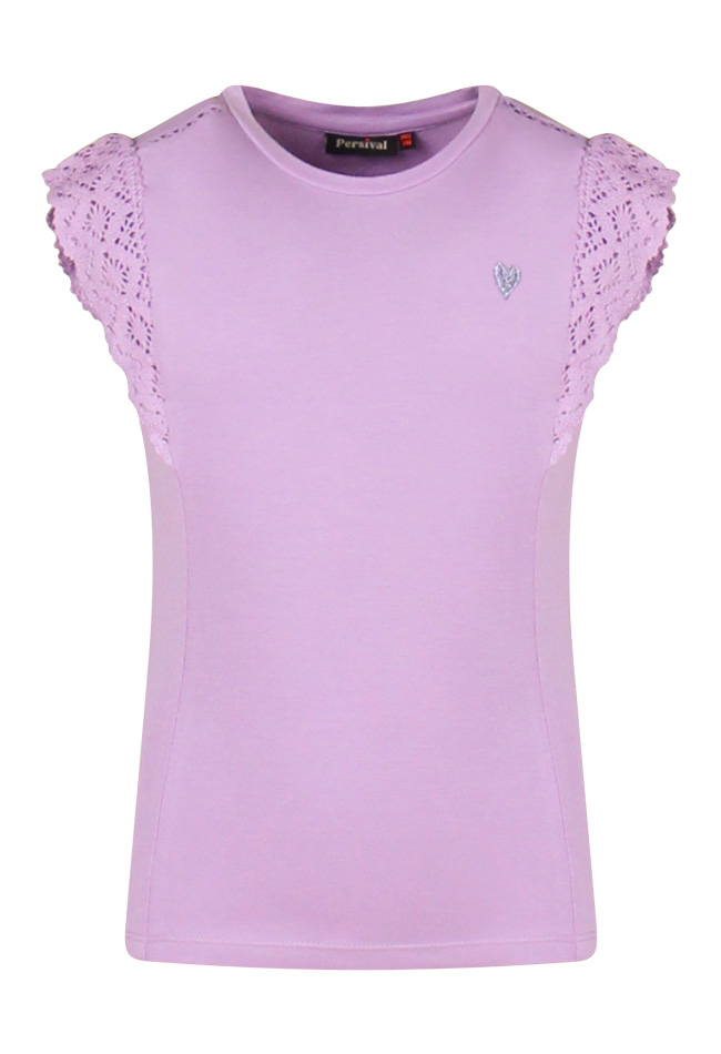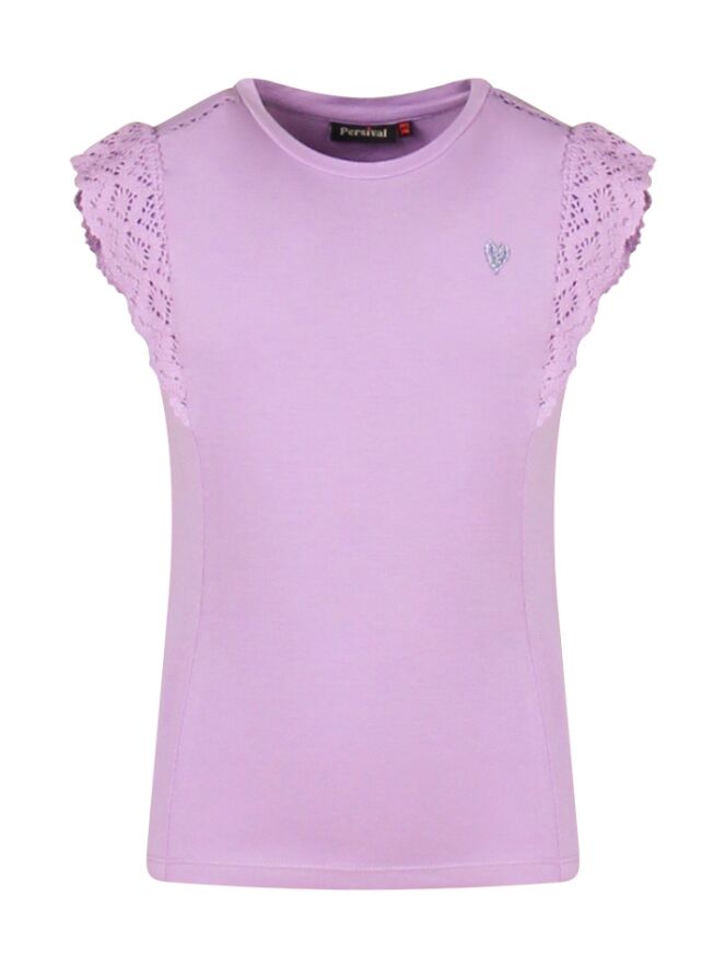 Zoet effen gekleurd shirtje met klein geborduurd hartje en speciale geborduurde mouw. Doet het altijd goed op spijker!