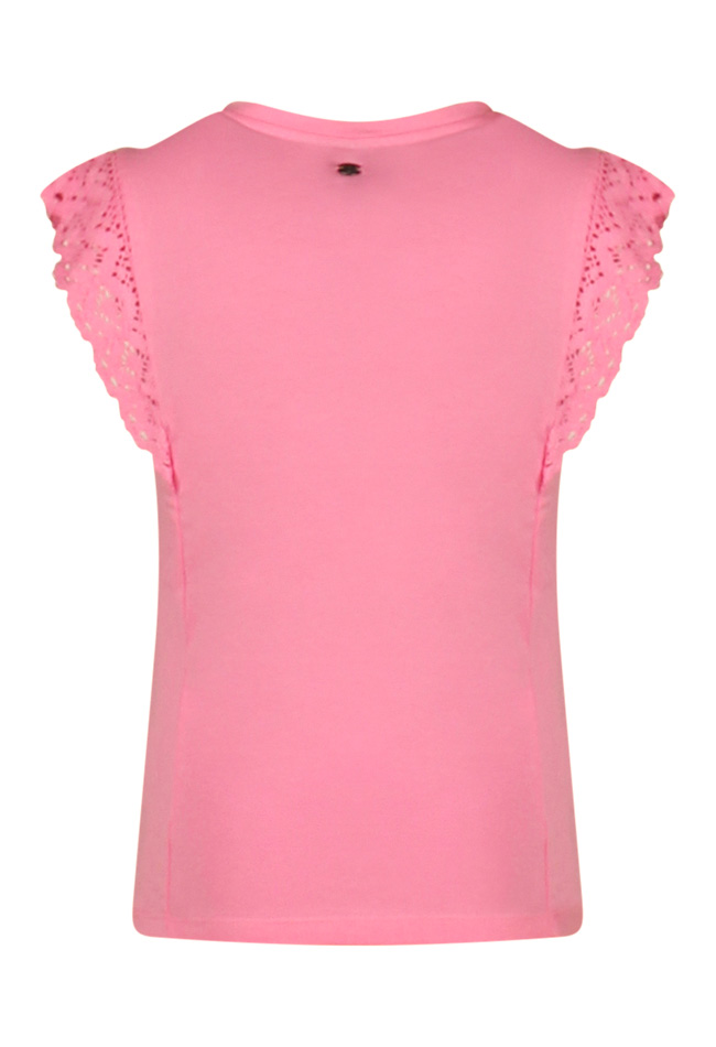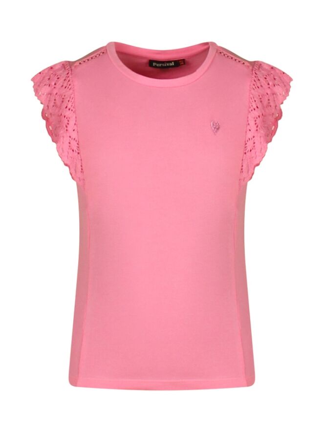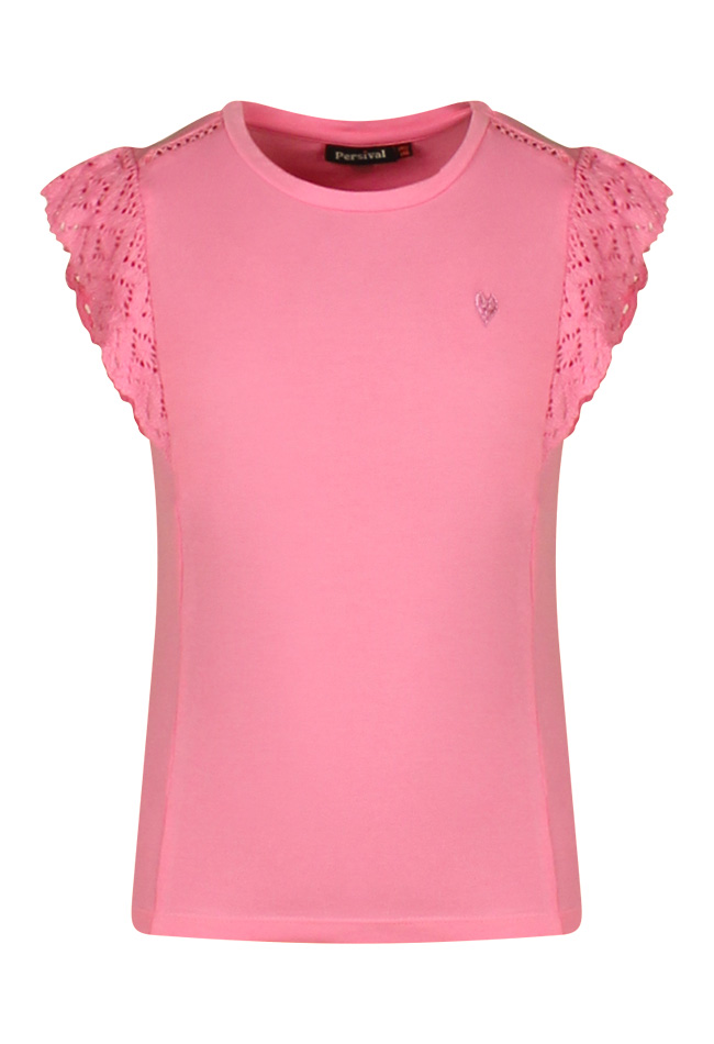 Zoet effen gekleurd shirtje met klein geborduurd hartje en speciale geborduurde mouw. Doet het altijd goed op spijker!