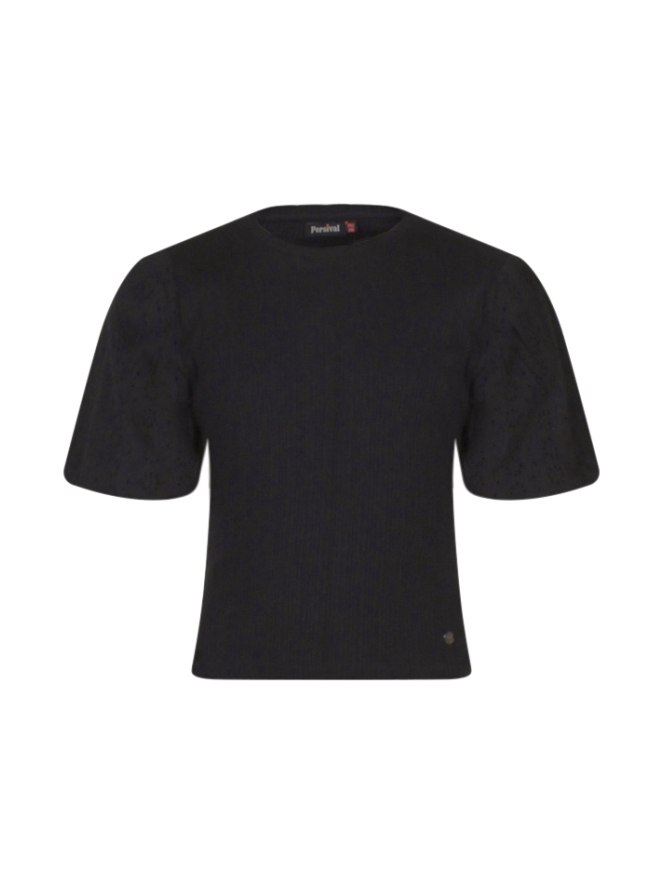 Fraaie basic top en toch net even anders! Met broderie ballonmouwen en een fijne rib in het lijfje. Geen prints, gewoon hele leuke details. Welke kleur kies jij?