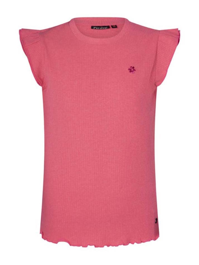 Effen gekleurd T-shirtje met een kleine fijne rib. Dit shirtje heeft een klein ruchemouwtje en verder geen poespas. Verkrijgbaar in maar liefst 6 super vrolijke kleurtjes! Makkelijk te combineren met rokjes, korte broekjes en spijkerbroeken!