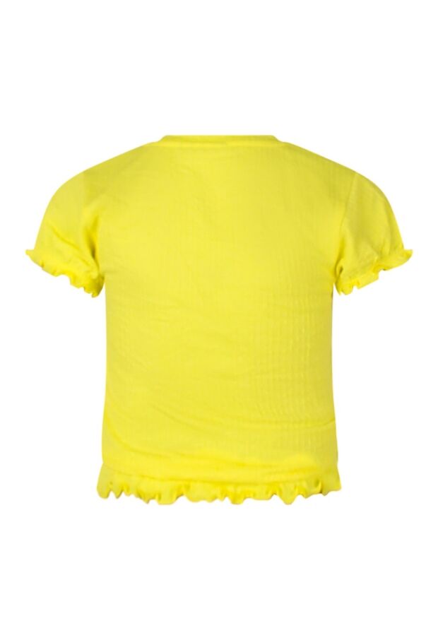 Vrolijke top verkrijgbaar in 3 felle fluor kleuren. Met elastiek in de taille zodat je het shirtje leuk kunt laten plooien. De stof rekt lekker mee en heeft een relief in de stof. Leuk op iedere broek, kort of lang. Of geef er je eigen twist aan door te mixen en te matchen!