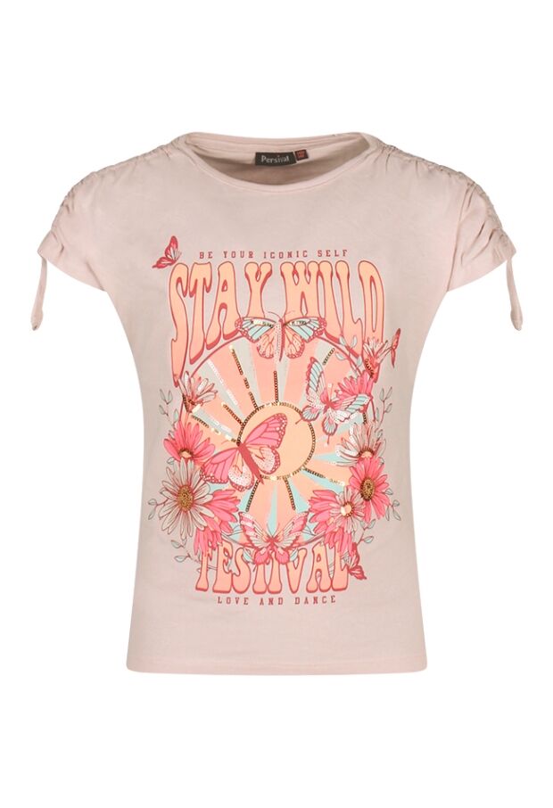 Stay Wild Festival Vibes! Dit vrolijke trendy shirtje laat jou stralen tijdens je favo dansje! Met een leuk optrekkoordje op de schouder en een mooie print voorop met glimmende paillettjes.