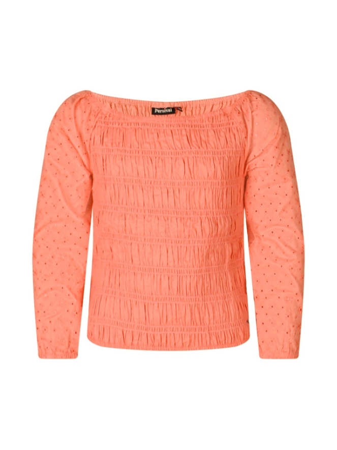 Even echt wat anders! Het lijfje van deze top is van dubbel gesmockt 100% katoen en veert heerlijk mee. De mouwen zijn van broderie en hebben een mooi ingeborduurd patroon. Leuk te combineren op denim!!