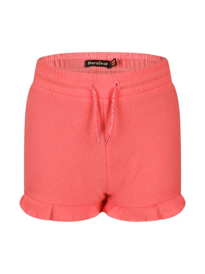 Deze short voor meisjes van ons eigen merk Persival is van een fijn gebreide stof en valt heerlijk soepel. Met mooie ruche afwerking rond de benen en een elastische tailleband met een koordje. Combineer het met een T-shirtje en je bent super hip en ready to go!