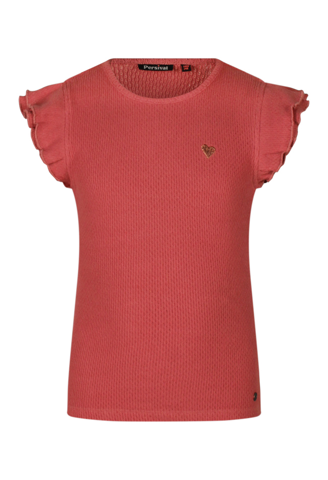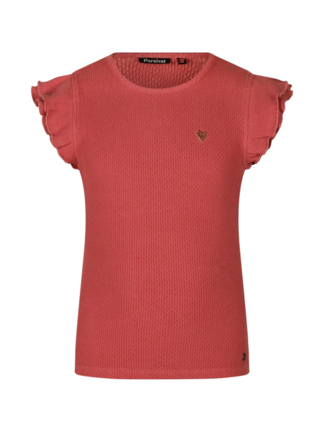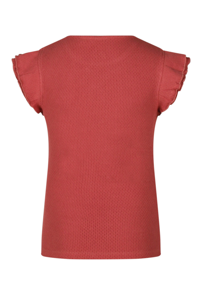Dit meisjes singlet is gemaakt van een fijne brei ajour stof en heeft schattige ruches voor een speelse uitstraling. Het setje wordt compleet met een bijpassende short (Z90097), perfect voor warme zomerdagen.