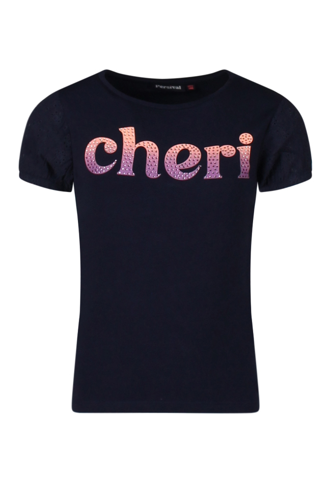 Cheri, ja dit shirt is echt een schatje! Met broderie pofmouw en mooie tekst strass print voorop. Dit trendy shirt combineer je makkelijk met spijker. Zo creeër je een trendy tijdloze look!