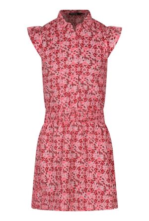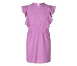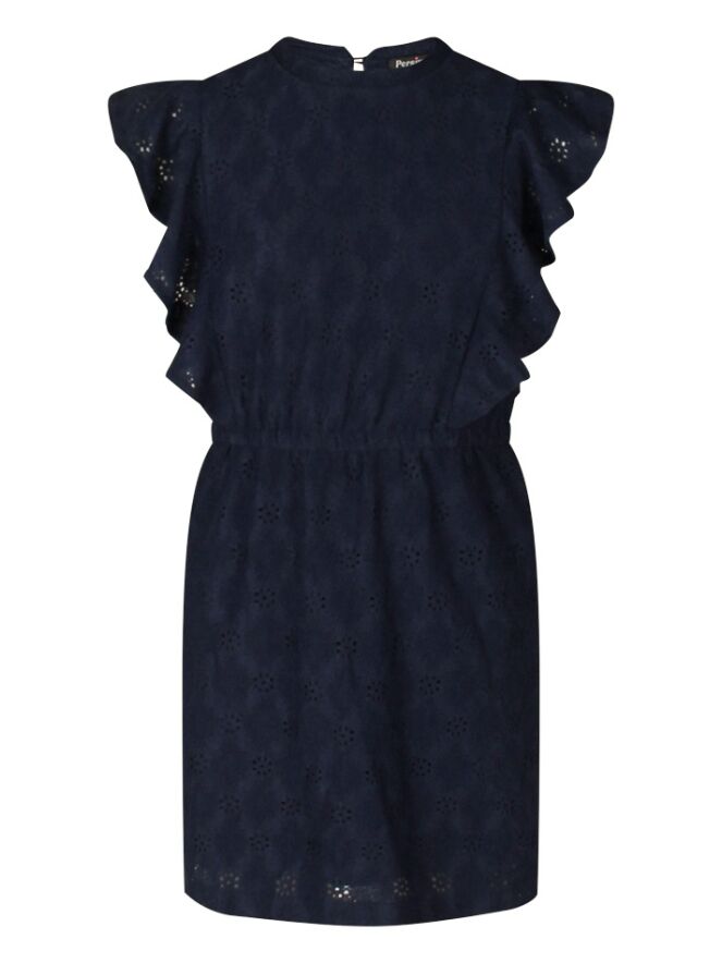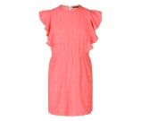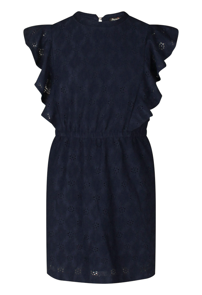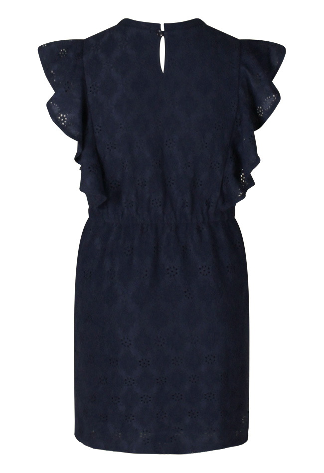 Deze mouwloze zomerjurk is een must-have voor zonnige dagen! De ajourstof en schattige ruches op de schouders geven een speelse en lieve uitstraling.