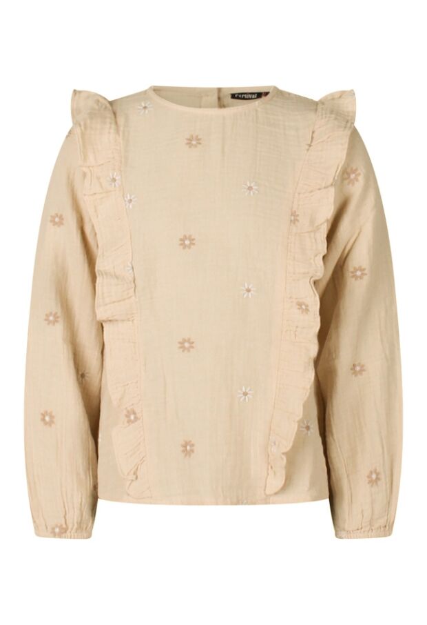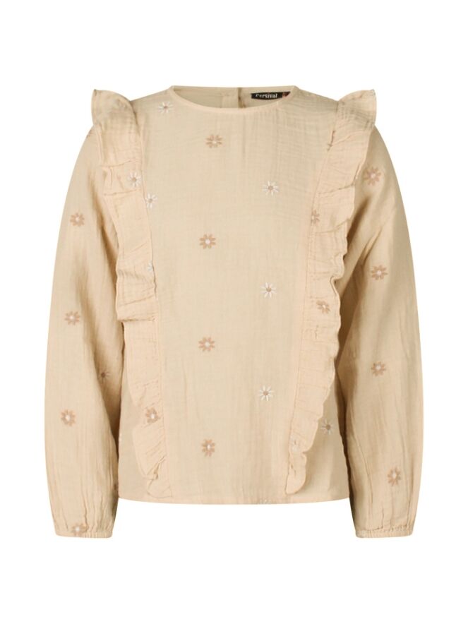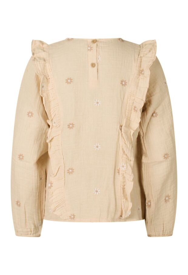 Dit pareltje is een echte blikvanger! Vol met geborduurde bloemetje voor en achterop is dit echt een zoete top! Gemaakt van 100% katoen mousseline draagt het ook nog eens zeer comfortabel door zijn hoge ademende vermogen.