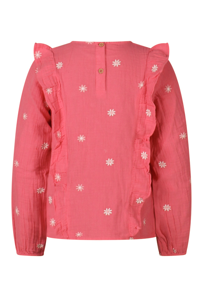 Dit pareltje is een echte blikvanger! Vol met geborduurde bloemetje voor en achterop is dit echt een zoete top! Gemaakt van 100% katoen mousseline draagt het ook nog eens zeer comfortabel door zijn hoge ademende vermogen.