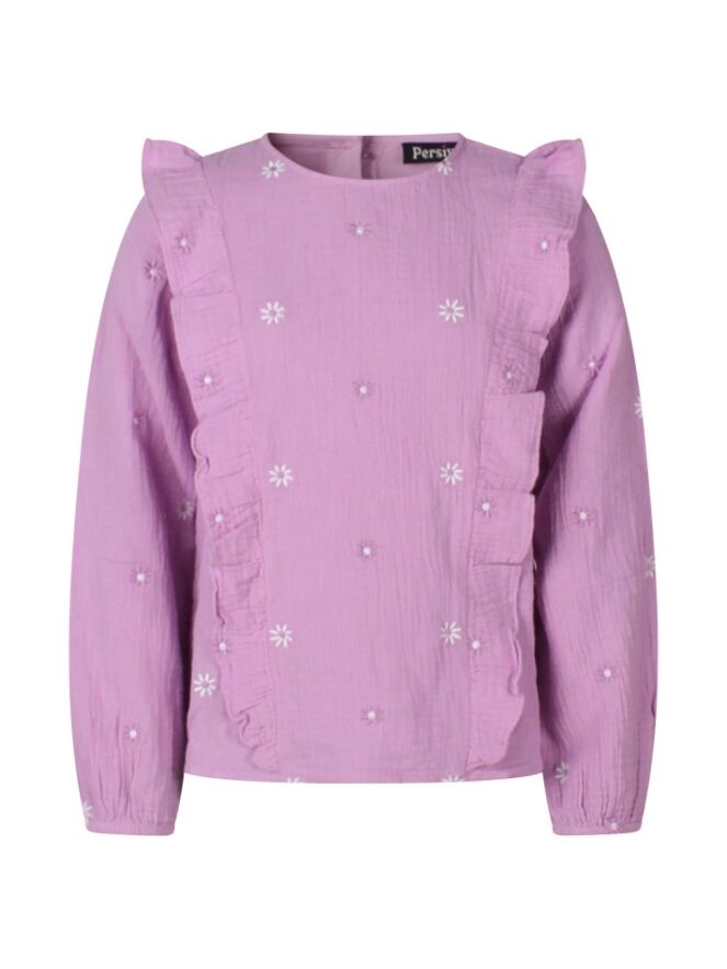 Dit pareltje is een echte blikvanger! Vol met geborduurde bloemetje voor en achterop is dit echt een zoete top! Gemaakt van 100% katoen mousseline draagt het ook nog eens zeer comfortabel door zijn hoge ademende vermogen.