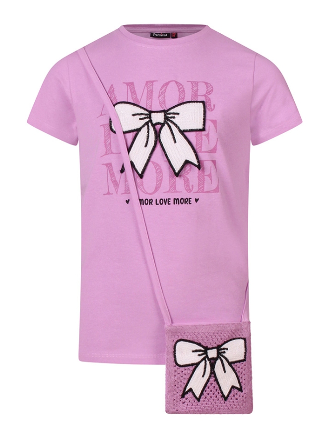 Dit schattige meisjes-T-shirt combineert comfort en stijl. Het shirt is gemaakt van zachte, ademende stof en is voorzien van een elegante crochette strik die een speels en verfijnd accent toevoegt. Bij het shirt hoort een bijpassend tasje met hetzelfde delicate crochette borduursel, perfect voor kleine essentials of om het outfitje compleet te maken. Ideaal voor feestjes, uitjes of gewoon om de dagelijkse look van je dochter op te vrolijken.