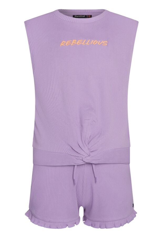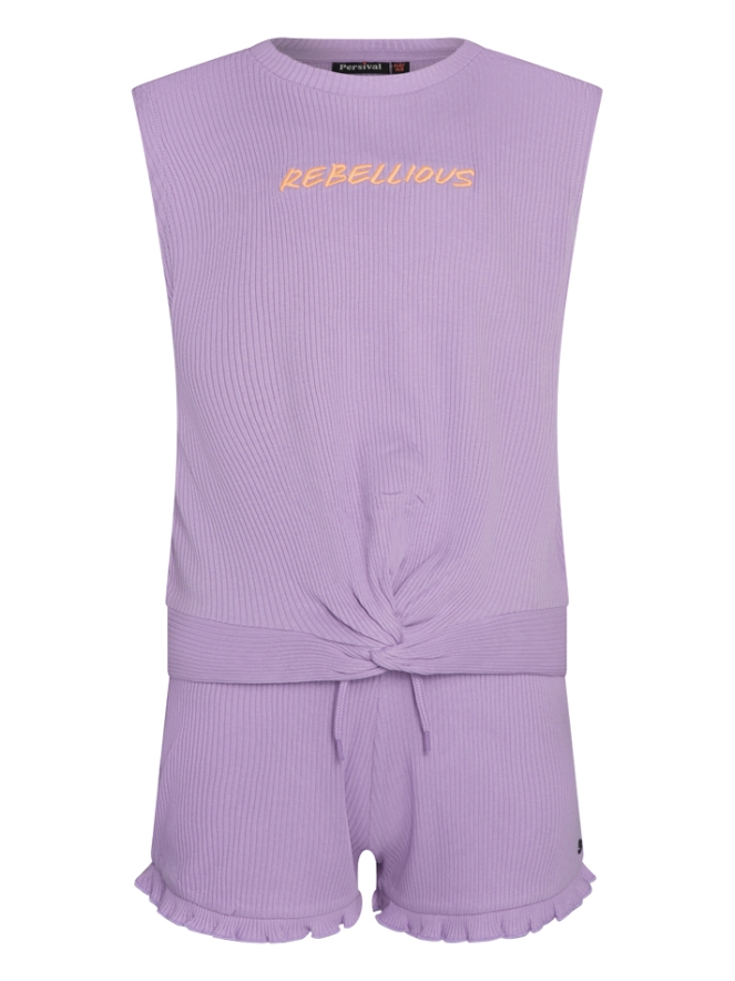 Deze mooie 2-delige set bestaande uit een mouwloos shirt met broekje draagt de tekst Rebellious op het shirt. Het shirt heeft tevens een draaisel in de stof onderin. De set zat? Trek hem dan uitelkaar en mix en match met de items die je al hebt!