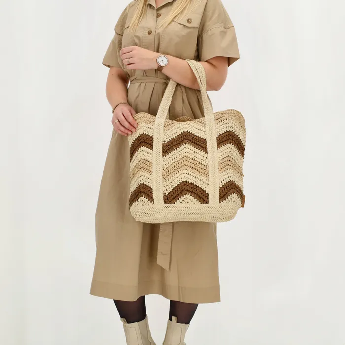 Deze gave Ibiza Boho shopper van Piero Erbacci-Florence is gemaakt voor jou! De tas is afsluitbaar met rits en de buitenkant is gemaakt van gehaakt papier. Binnenin heeft de tas een polyester voering met nog een extra ritsvakje. De afmetingen van dit pareltje zijn 33 cm hoog, 41,5 cm breed en 11 cm diep.