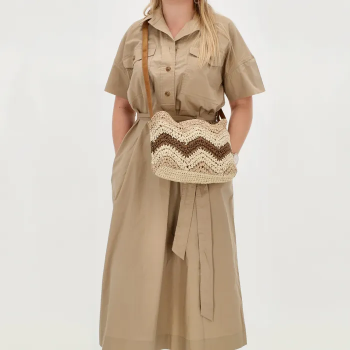Dit pareltje van Piero Erbacci-Florence wacht om over jouw schouder te shinen! Deze schoudertas is afsluitbaar met rits en de buitenkant is gemaakt van gehaakt papier. Binnenin heeft de tas een polyester voering met nog een extra ritsvakje. De afmetingen van dit schatje zijn 21 cm hoog, 31 cm breed, 5 cm diep.