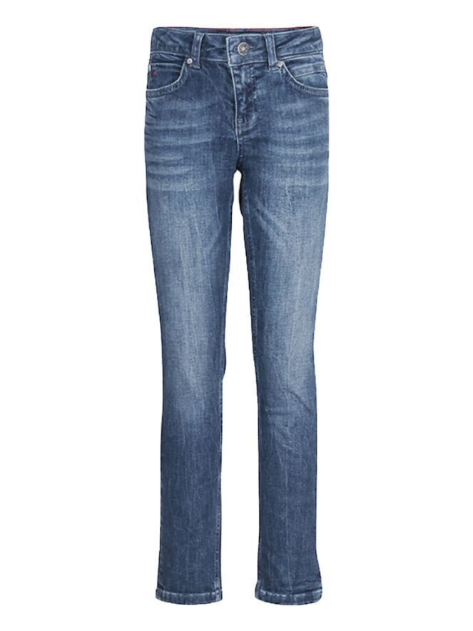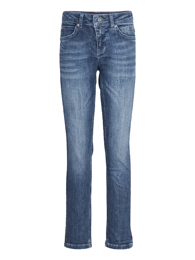 Deze jeans heeft een used look wassing, 5 zakken, stretch en een verstelbare tailleband.