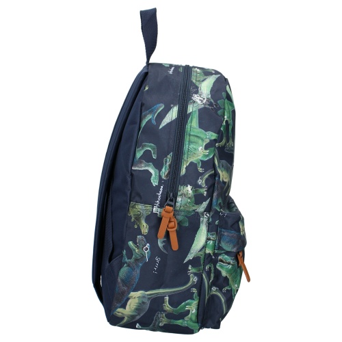 Deze stoere rugzak is perfect voor jongens heeft een coole dino print op een navy blauwe achtergrond. De rugzak heeft een ruim hoofdvak en een kleiner voorvak, waardoor alle school- of logeerspullen gemakkelijk kunnen worden opgeborgen. Met de stevige ritsen sluit je de tas eenvoudig en veilig. Bovendien kunnen de verstelbare schouderbanden worden aangepast voor een perfecte pasvorm bij elk kind. Een trendy en praktische rugzak voor jonge avonturiers!