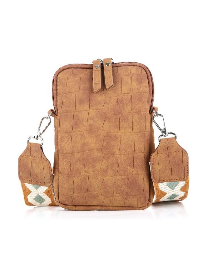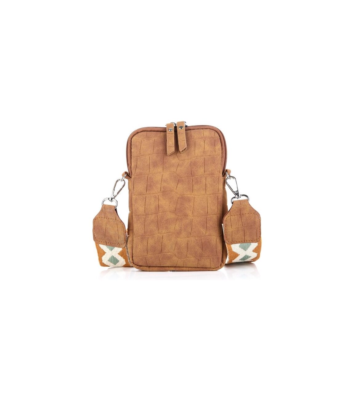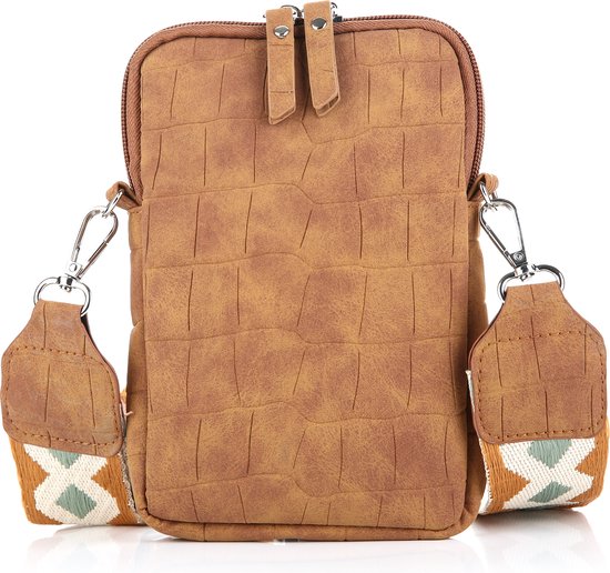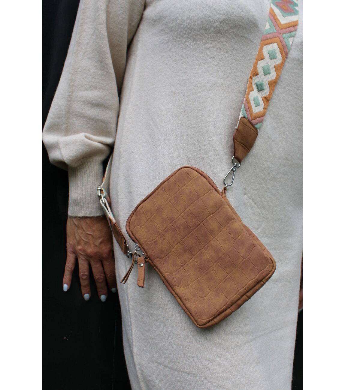 Dit heuptasje in croco print heeft een gekleurde afneembare schouderband. In het tasje zelf zit een klein afsluitbaar ritsvak.