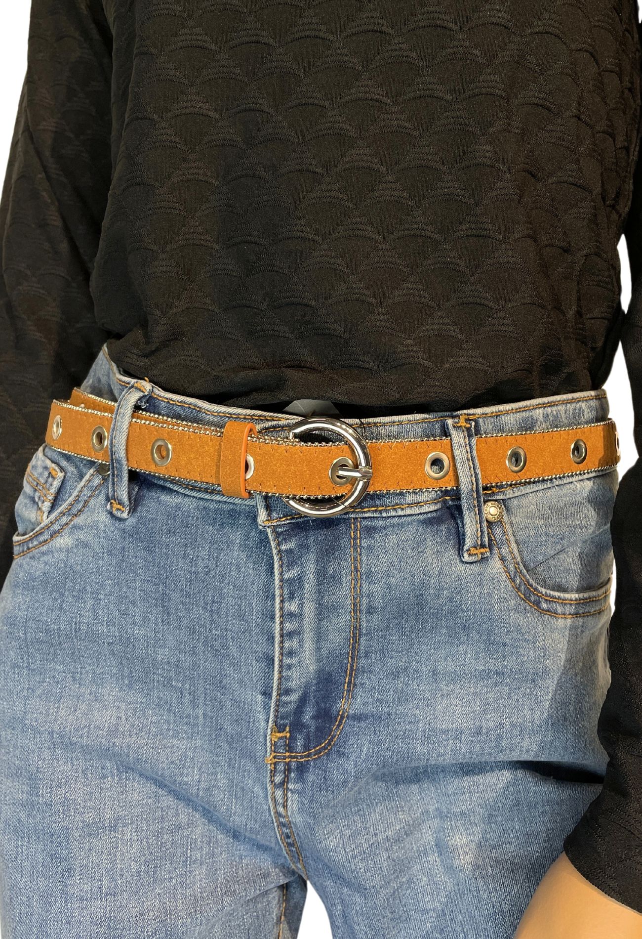 Riem met ringetjes, waardoor je de riem gemakkelijk kunt verstellen. De riem heeft een breedte van 2,4cm.