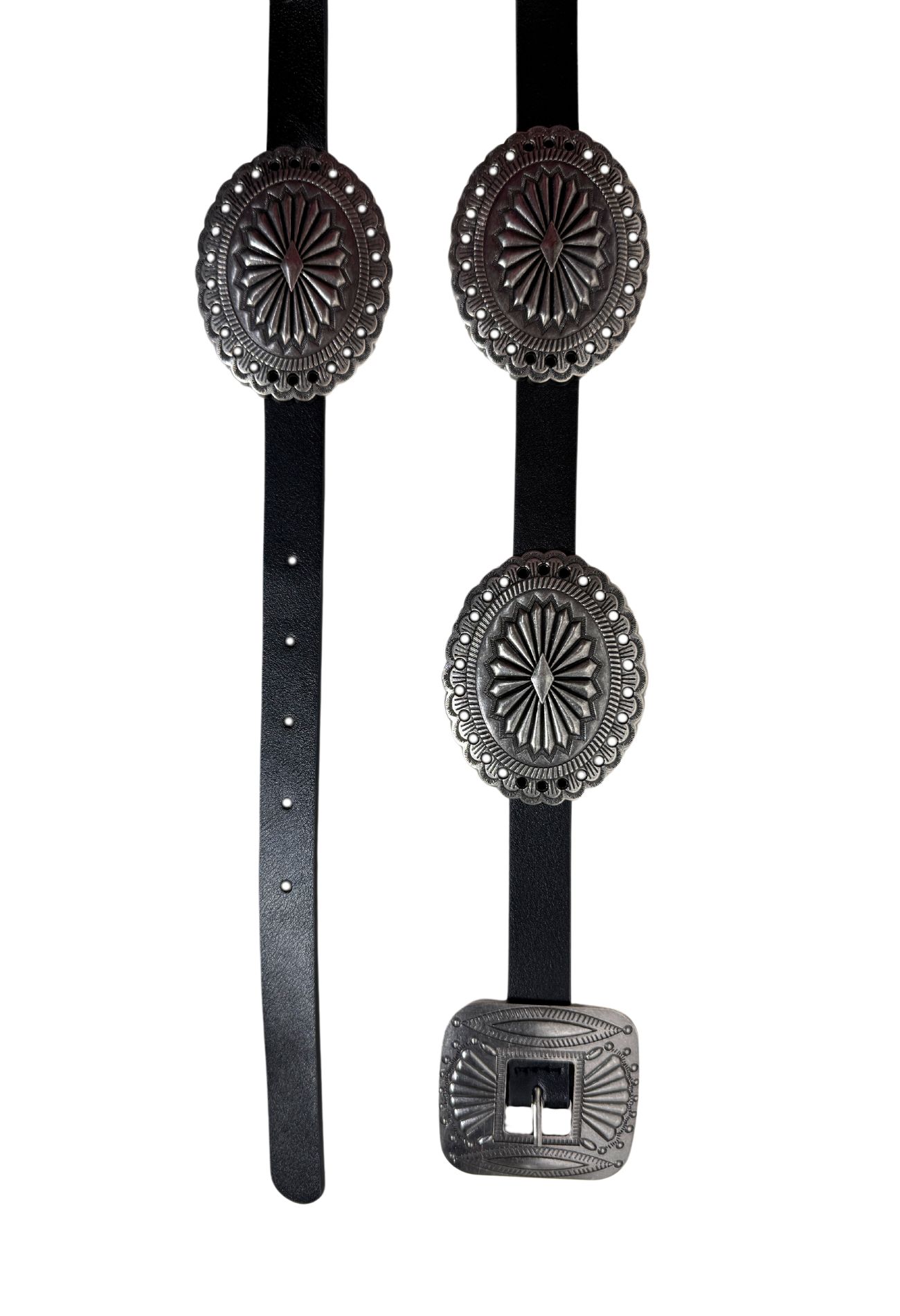 Deze zwarte riem van PU leder heeft grote gespen welke 4,5 cm hoog zijn.