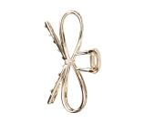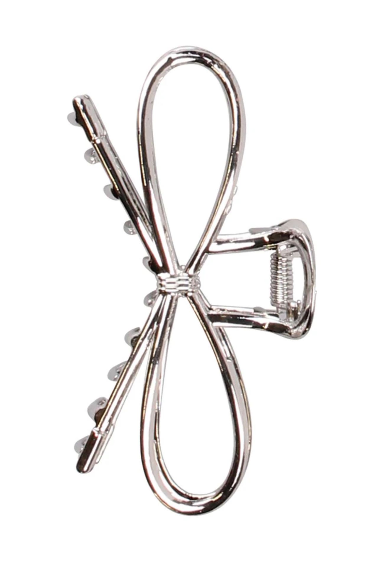 Verfijnde degelijke licht metalen haarclip in de vorm van een strik. De lengte van deze speld is 10 cm.