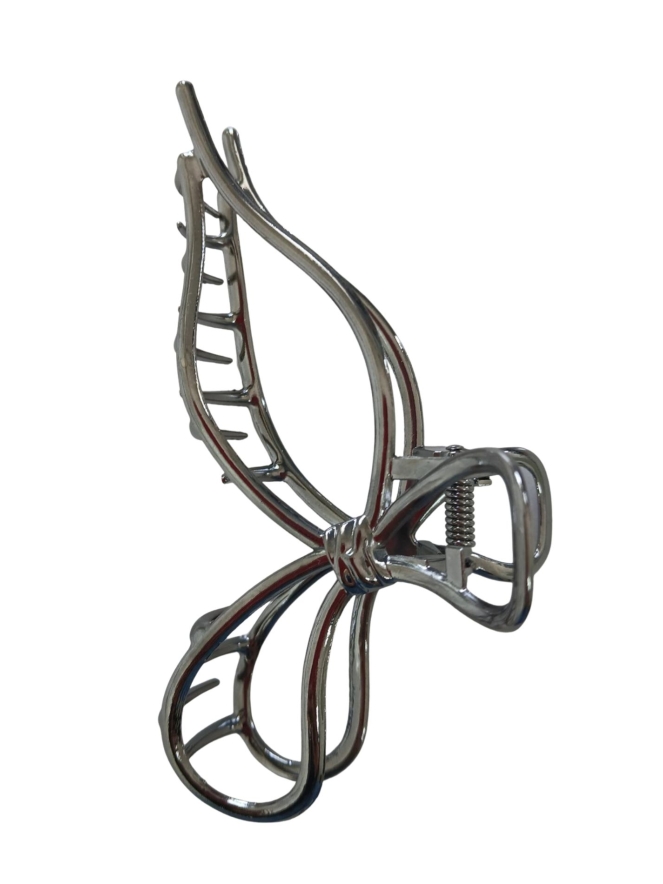 Degelijke haarclip in de kleur goud, zilver of gun grijs. De strik haarklem heeft een lengte van 13 cm.