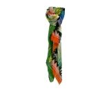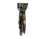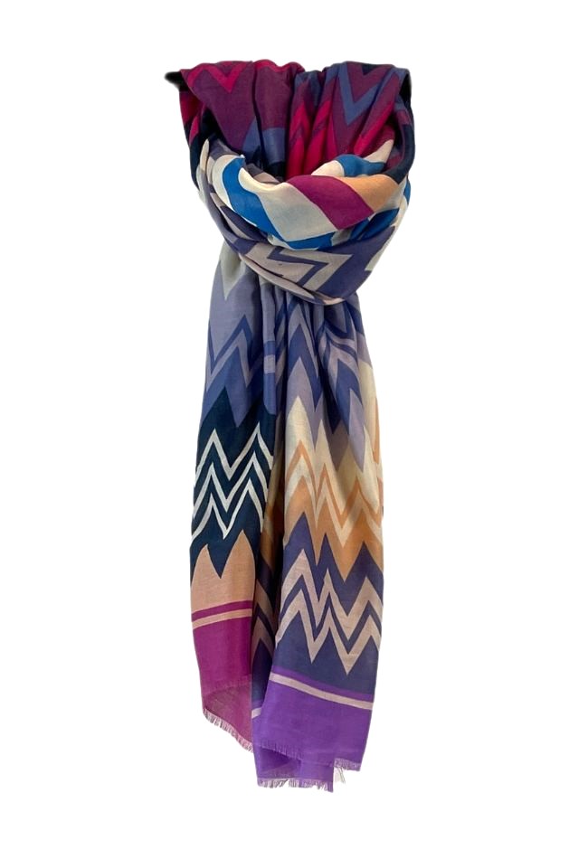 Deze sjaal met gekleurde zigzag print heeft een afmeting van 90 x 180 cm.