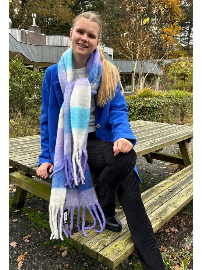 Heerlijk warme sjaal met ruitprint en leuke franjes. De perfecte accessoire voor bij je winterjas. De sjaal is 35 x 210 cm