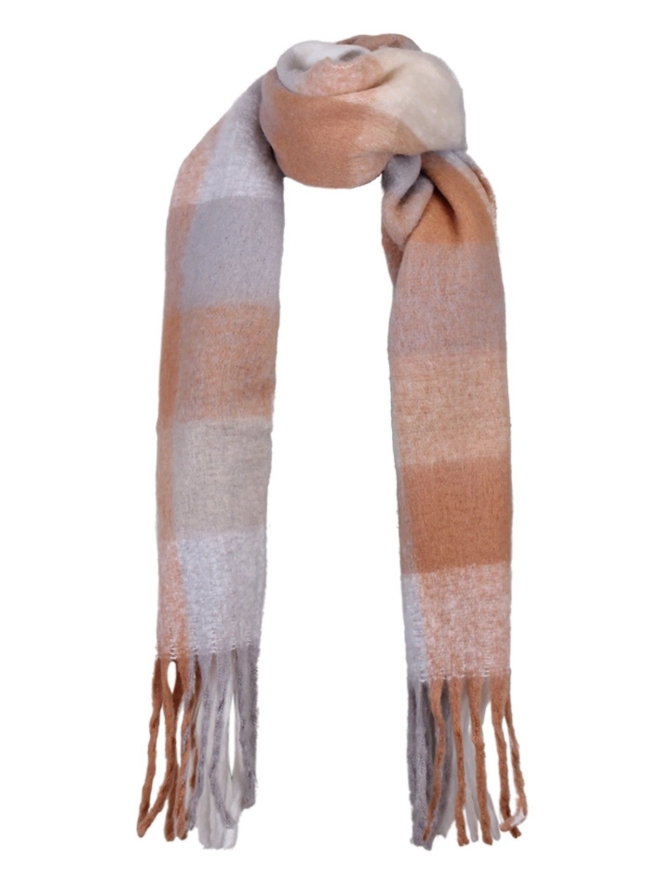 Heerlijk warme sjaal met ruitprint en leuke franjes. De perfecte accessoire voor bij je winterjas. De sjaal is 35 x 210 cm