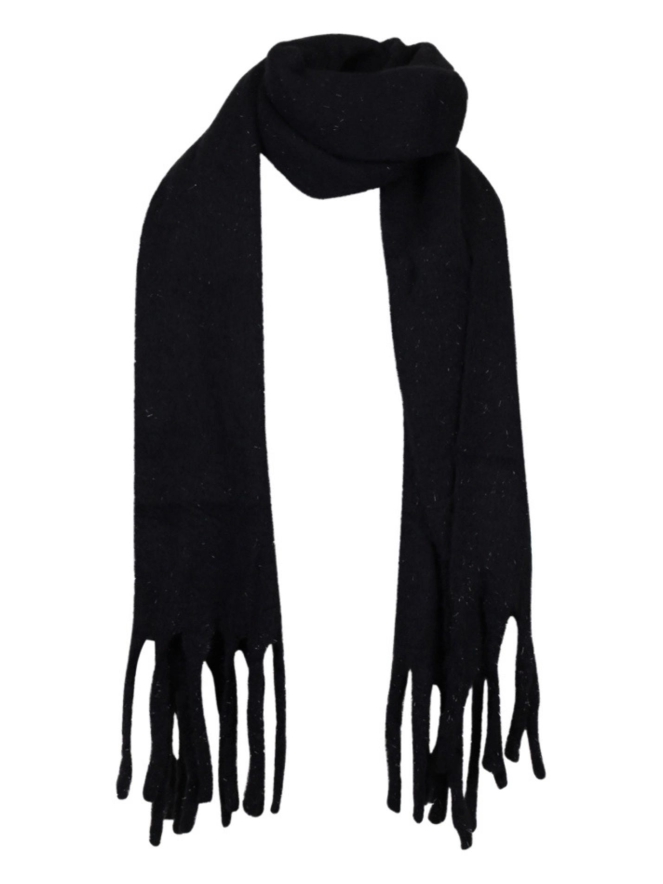 Sjaal in een effen kleur, met lurexdraad door de stof verweven voor een subtiele glitter. De sjaal is 40 x 180 cm.