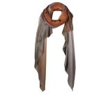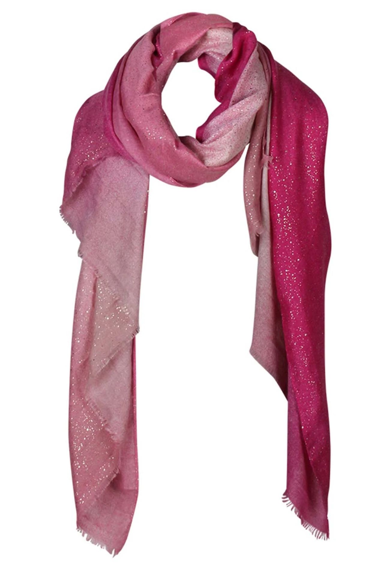 Prachtige zomerse sjaal met mooie kleurschakelingen en een goudkleurige spetterprint. Van 100% polyester.